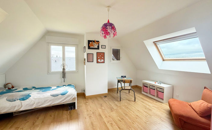 À l’étage, vous découvrirez deux belles chambres, ainsi qu’une salle d’eau avec WC et des espaces de rangement.