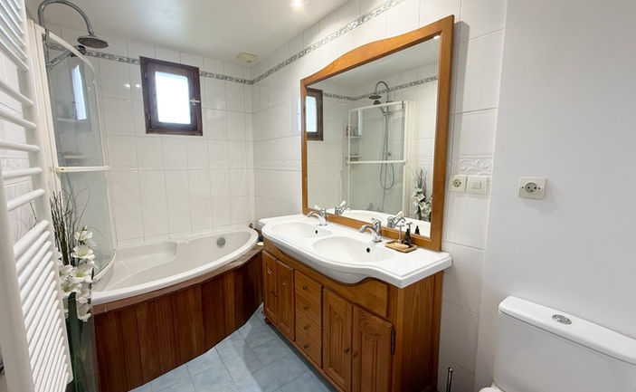 Côté confort, la maison est équipée d’un système de chauffage par pompe à chaleur complété par un insert à bois, pour une chaleur agréable et économique.
